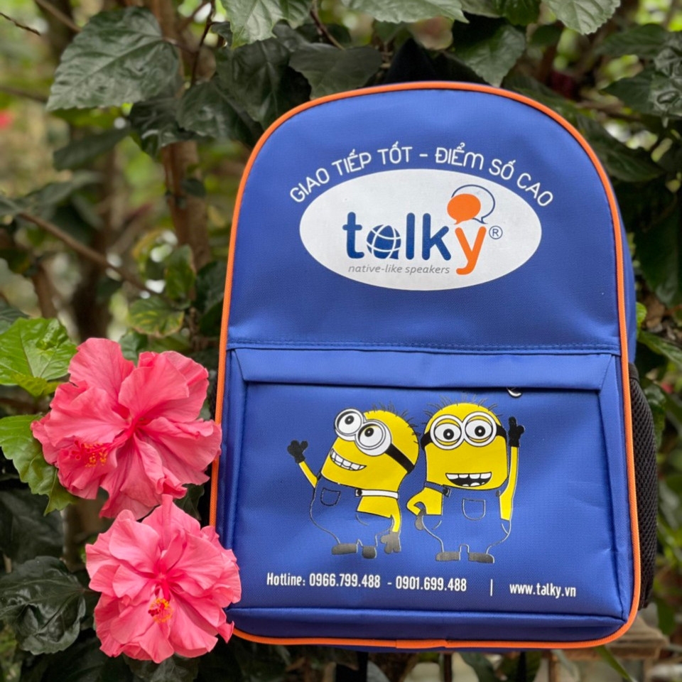 ✔️ Thiết kế ấn tượng: Logo Talky được in nổi bật, đi kèm với hình ảnh Minions vui nhộn, thân thiện và phù hợp với đối tượng học viên trẻ.