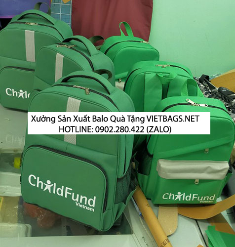 Sản xuất balo học sinh mầm non và tiểu học in logo ChildFund